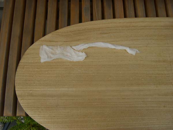 かなりポッコリと凹んでいたのがきれいさっぱり。水を含ませると木が膨張するのを応用してみました。