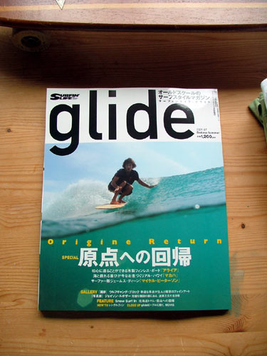 出勤途中に本屋に寄り道したら、新しいGLIDEが出ていたので買ってきました。今回の特集は、アライア、マカハ、マイケル・ピーターソンです。表紙はロブ・マチャドのアライア。そういえばギアーズの遠藤さんにお願いしたアライアどうなったかな?今年の夏くらいまでには普通に横に滑れるくらいにはなりたいものです。