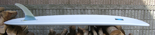 6’8”はミニモデルと同じアウトラインで、ロッカーとボトムのシェイプを変えることによってハルの性格を与えています。ボトムは扱い易くクセが少ないトライプレーン。フィンはテールから12インチの位置からスタートして、そこから前後に少しずつ動かしながら感触の違いを楽しんでいただきます。