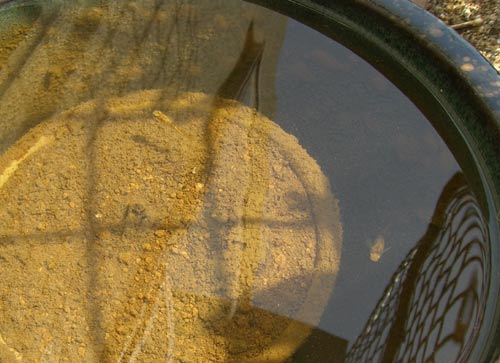 四ヶ月以上ほったらかしで真冬には分厚い氷が張ったりと、きっとみんな死んじゃったんだろうなあと思っていたのですが、暖かくなってまたチョロチョロとし始めました。あんなに長い間世話をしなかったのに生きていたのがいたんだー!とよーく見てみると、いち、にい、さん、しい…5匹全員サバイバルしております。やっぱり腹が減っているのかエサをあげると凄い勢いで食べています。