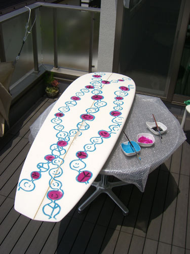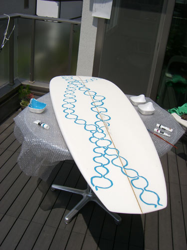 天気も良いし、風も無いし今日は絶好のお絵かき日和。カツさんのボードにペイントするには最高の朝に思えたのでさっそく実行することにしました。