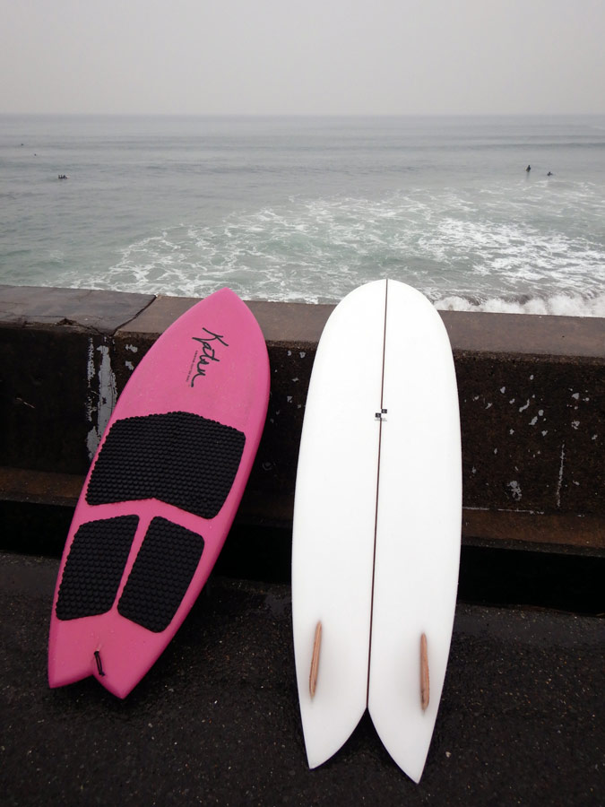 フィッシュの小さいのや、ショートボードに乗っている人が乗ったらかなり面白いんじゃないかと思います。どう考えてもスピード出るカタチです。