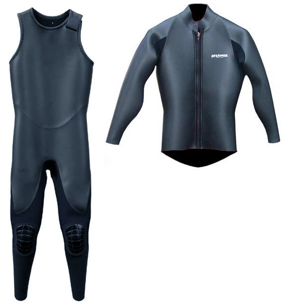 このセットアップは、うちの開店以来、根強い支持をいただいている定番です。上の3ミリフルスーツと同じ素材で、価格も同じです。ロングジョン単体としても使えます。ジャケットは、3ミリ、2ミリどちらでもご対応可能です。