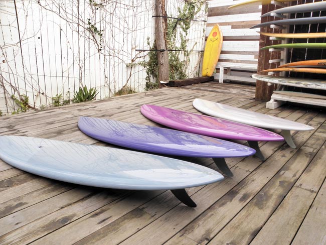 ショップのオープンは2001年。それ以来、ロングボードをベースに、フィッシュ、ボンザー、シングルフィン、ニーボード、パイポとさまざまな種類のサーフボードを作り、試してきました。