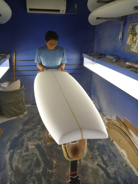 ショップのオープンは2001年。それ以来、ロングボードをベースに、フィッシュ、ボンザー、シングルフィン、ニーボード、パイポとさまざまな種類のサーフボードを作り、試してきました。
