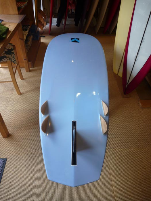 マンダラのオリジナルテンプレットのクアッドフィンです。リッチ・パヴェルに師事したシェイパーらしい、カナードのカットフィンタイプのアウトラインです。