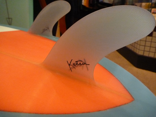 クリステンソンのトライフィンはショートボードばっかりなので、乗れない 笑。そうするとカツさんのシェイプです。