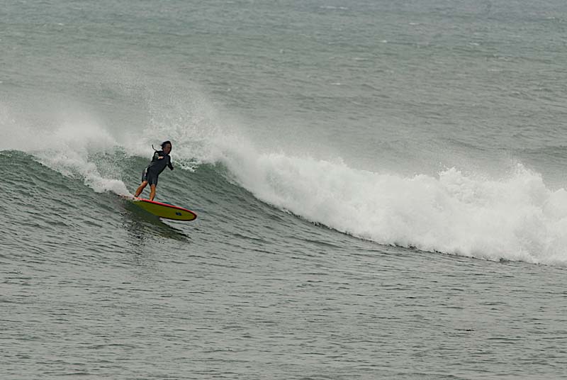 しかも、うねりから滑り出すのでそのスピード感をしばらく味わうことができます。スピードの気持ちよさ。浮力が大きいボードの醍醐味のひとつです。