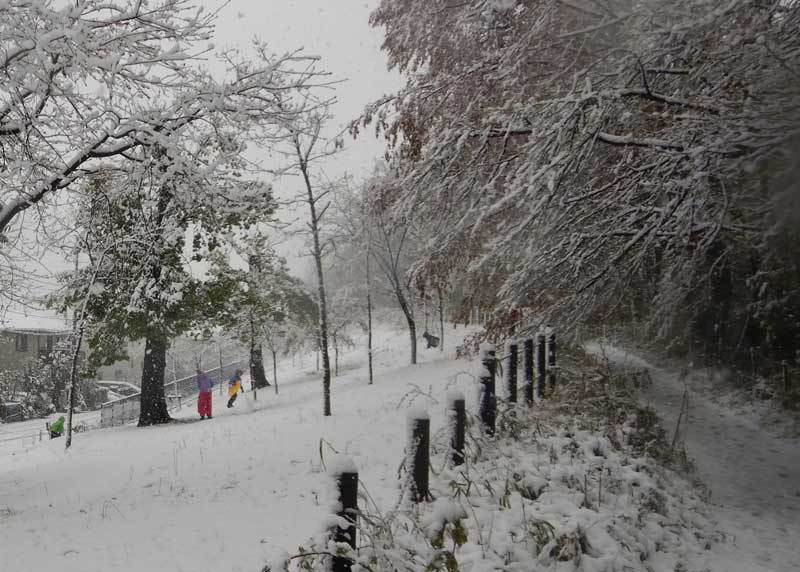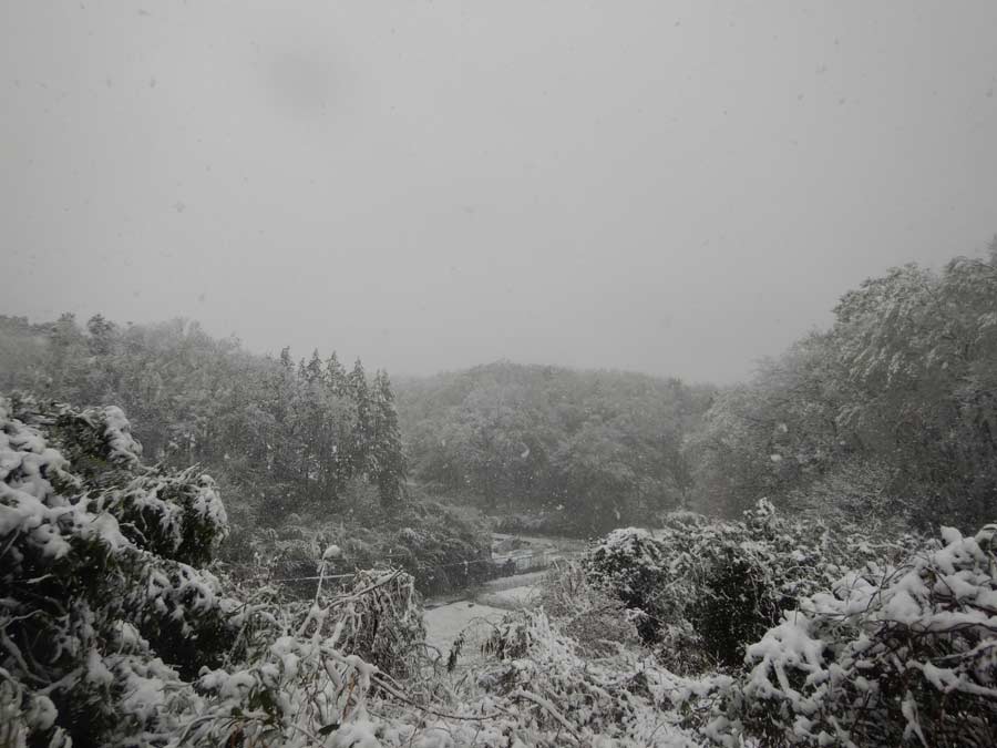 久しぶりの雪中トレッキング。降ってくる量がすごいので久しぶりに大変なことになるかと思っていたら、気温が低くないのでそれほど積もらないような感じです。