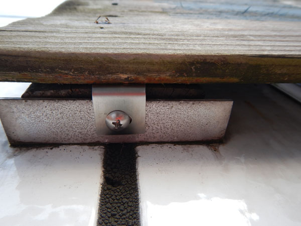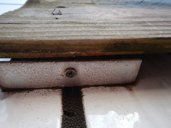 看板の木が古くなって、木ねじでの支えだけでは心もとなくなってきたのでL字の金具をかませて、タッピングビスで固定しました。上部がしっかり固定されているのですが、備えあればなんとやらです。