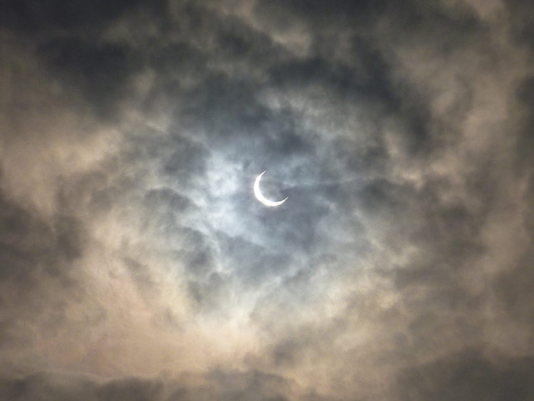 リングではないですが太陽が欠けていく途中、雲が光をデフューズしてくれ、写真を撮ることができました。