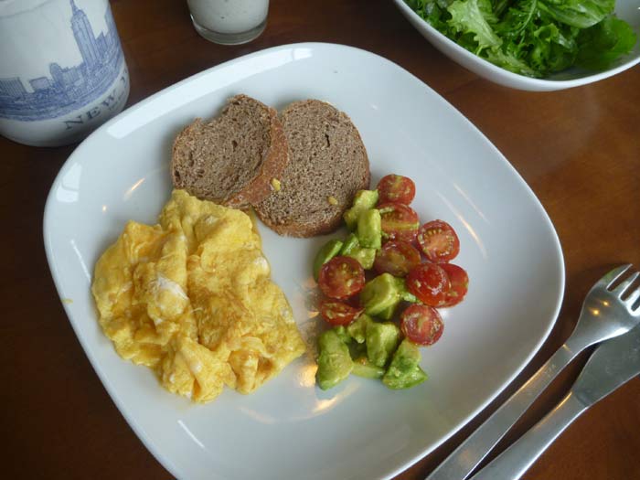 朝サラダ、卵焼き、トマトとアボカドのサラダ、スムージーにコーヒーと、あれならこれもかと朝から調子に乗って作りすぎてしまいました。