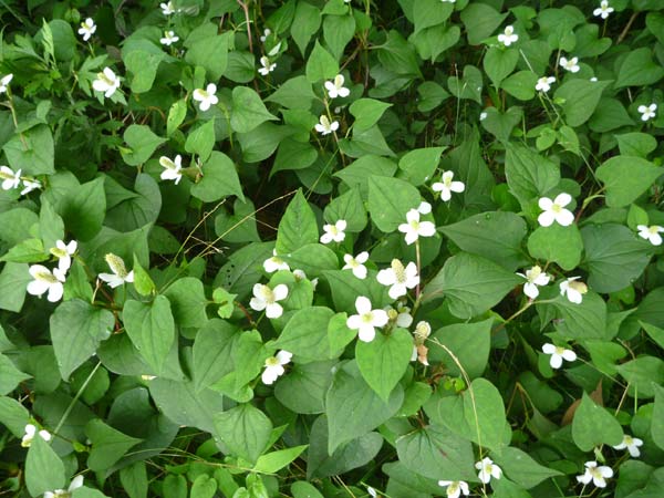 そして梅雨をいち早く知らせてくれるドクダミ。庭に蔓延る(はびこる)とやっかい以外の何者でもありませんが、山の中で日かげの地面一面に真っ白い花が咲いているのはきれいなものです。