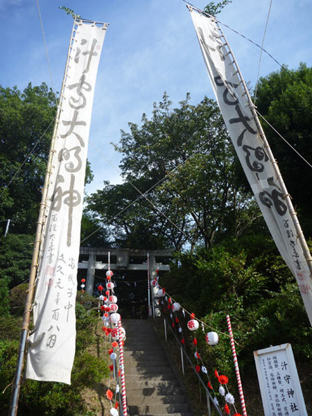 田んぼの中を走っていくと、この地域の鎮守の神様を祀る神社では秋祭り。
