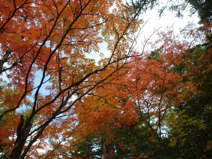 標高2000メートルを越えると吐く息も白くなるくらいの気温です。季節は1ヵ月くらい進んだ感じでしょうか?ナナカマドの紅葉がきれいです。