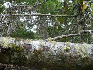 倒木。乾いたような苔が生えています。