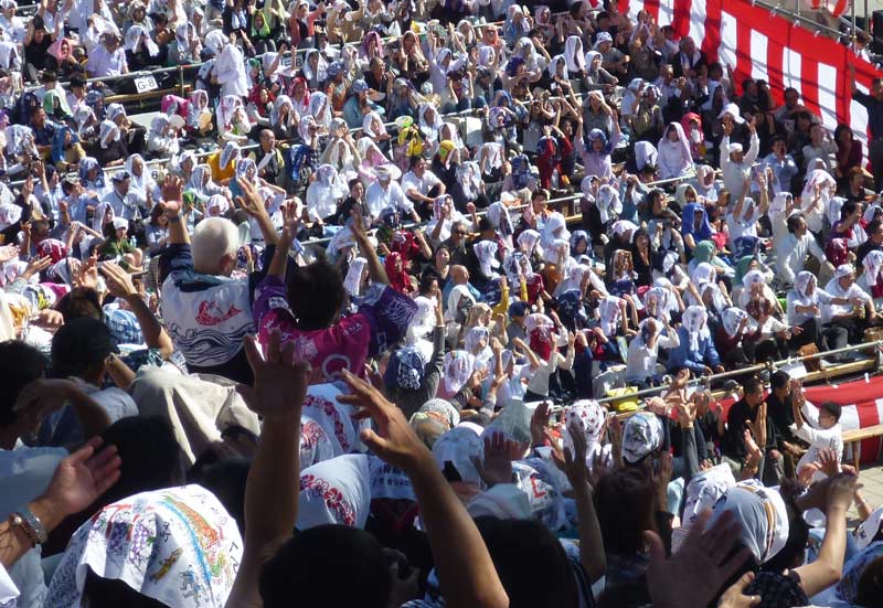 面白いのは演技を終えて戻ろうとする出し物に対して、観客がアンコールを要求するところ。