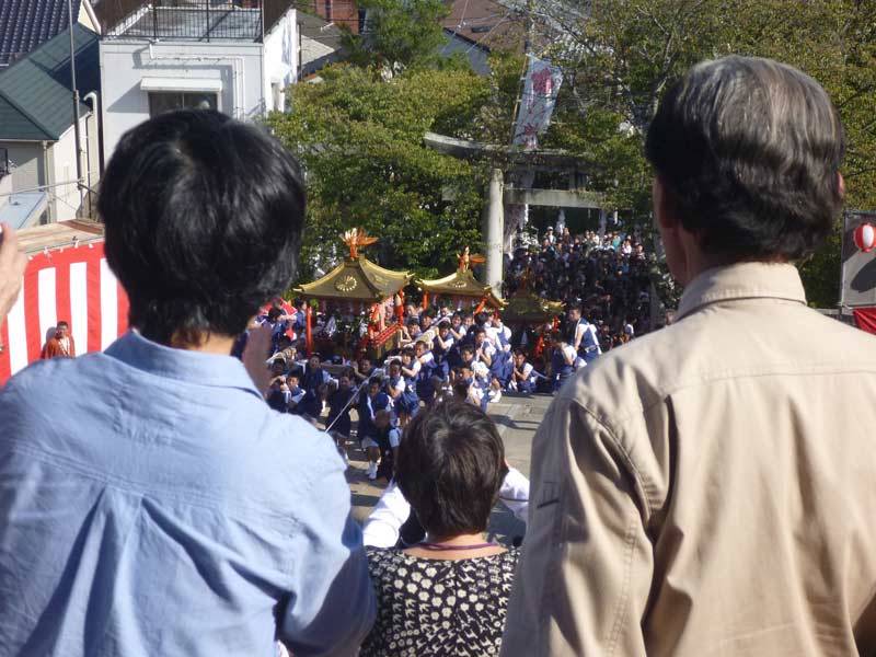 境内には見物の桟敷が組まれ、踊町はここで神前に出し物を奉納します。