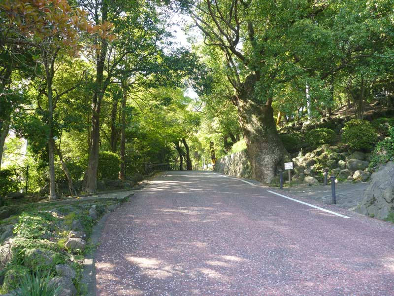 ここにはかつての郭(くるわ)の跡と石垣しか残されていません。小高い丘の頂上にこの石垣が積まれている景色は思わず足を止めて見とれてしまうほど、その形や色が美しい城跡です。世界遺産にふさわしい佇まいです。