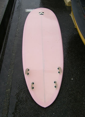 何本か乗りましたが、このボード調子いいです。ぱっと見では判りませんがボンザー並の深いシングルダブルのコンケーブとクアッドフィンでよく走ってよく回ってくれる感じ…。今度サイズが上がったら出動させたいと思います。
