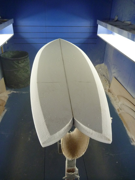 BONITA FISHも制作中です。サイズは5’8”。ずいぶん短く感じるかもしれませんが、私でさえ(笑)このサイズで乗れるフレンドリーなフィッシュです。