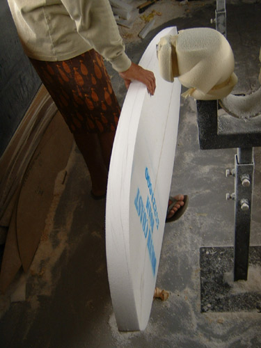 カツさんはただいまニーボードをシェイプ中。鎌倉のニーロのリクさん用です。しかしこのブランクス、すごいボリューム。ここからレールとロッカーを削り出すのは大変な作業のようです。(もちろん技術的にも。)