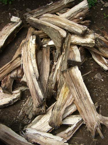 これは桐。私のアライアを作ったときの端材です。焚きつけにばっちりです。アライア、どこまでもナチュラルです。