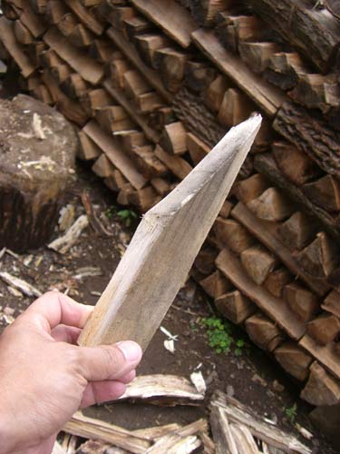 次の一撃で見事に真っ二つ。ヤッター。あとは簡単です。割って中を見たら真ん中にコブがありました。これが邪魔をしていたのと、逆から割っていました。どうりで割れないハズです。