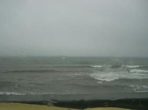 コシ、ハラ、オンショア、ジャンク、強雨。パドルアウトしていると灰色のうねりと強い雨に閉じ込められているような感覚になってきました。