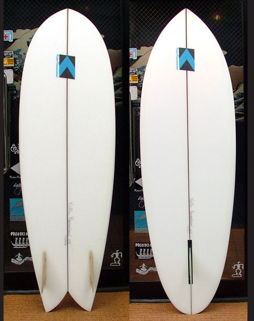 ラウンドノーズのフィッシュはフィッシュ・フライで持っていった赤い5.8の試乗ボードと同じシェイプです。ノーズ寄りに乗ってパドルする素早いテイクオフとスピード、そしてスピードをロスしないターンが特長です。