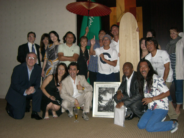 東京ミッドタウン内にある高級居住施設「OAK WOOD」のラウンジで川南活さんのサーフボードと横山泰介さんの写真が夏のイベントとしてディスプレイされることになったので、そのパーティへ参加してきました。