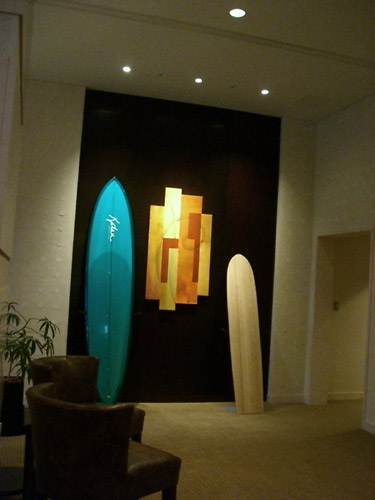 モダンなインテリアに「Katsu」のロゴのサーフボードが驚くほどしっくりきてしまうのにとても驚きました。まじめに’クールモダンなオブジェ’です。