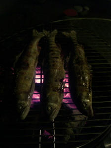 たっぷり海で楽しんで、夜は自宅でBBQ。アユの塩焼き丸かじり。