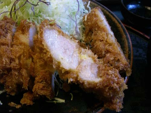 私はブタバラカツ定食を発注。脂身たっぷりですがいい豚なのでぜんぜんくどくありません。テーブルにソルトミルが置いてあって、それで塩を挽いて食べるのが一番ウマイ。ビール追加です(笑)ブタの旨みとカラリと揚がった香ばしいパン粉がたまりません。衣だけでもウマイんです。