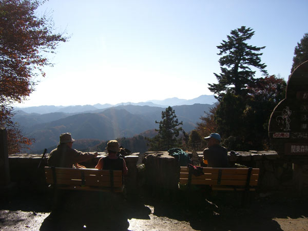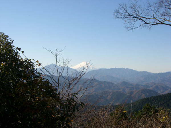 山頂からの富士山です。高尾山頂からさらに尾根伝いにいろんな山々へと登山道が延びています。11月に走った陣馬山へも行くことができます。女房のお母さんはしょっちゅう山歩きをしているので健脚です。疲れる様子もなく楽々と登ってきました。