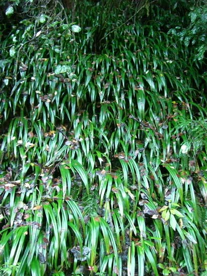 高尾山には登頂ルートがいくつもあって季節や天候、登り下りでそれぞれ違う表情でハイカーを楽しませてくれます。植生がバラエティに富んでいるのも高尾山のユニークなところ。沢の斜面にはこんな植物が生い茂っています。