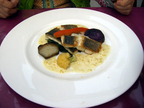 私はかますのロースト、カリフラワーのピュレソース。かますをこうやって食べさすのも珍しいです。