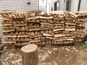この薪はもうひと夏越させます。理想的な2年乾燥の薪が出来上がります