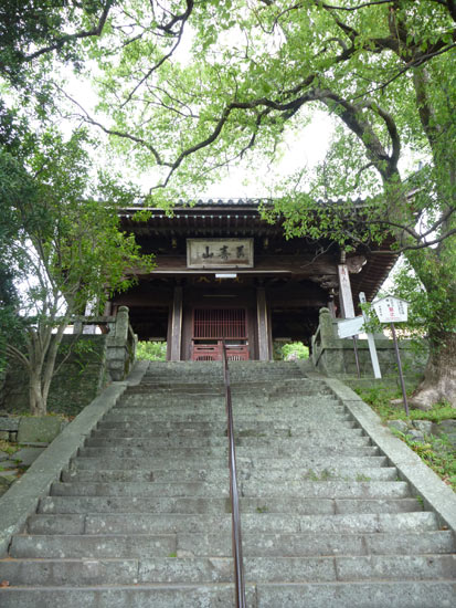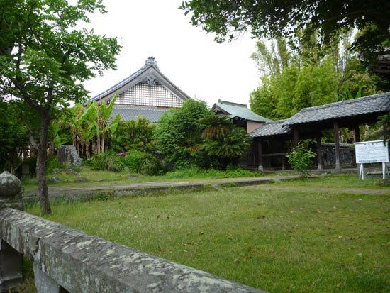 フェニックスとバナナの木が茂る寺は私にとってはとても長崎らしい光景。