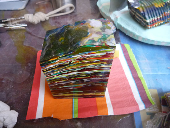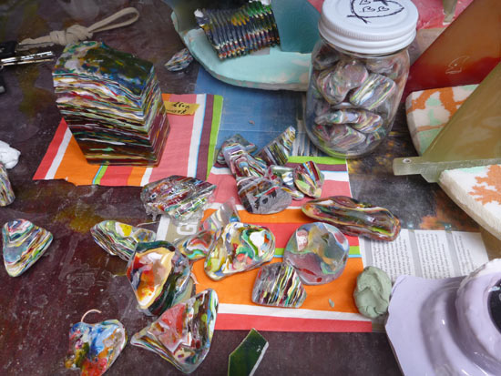 先日ご紹介したレジンアクセサリーの製作工房です。偶然が作り出す形と色は意図されたものでは無いせいか、まるで天然石のようにナチュラルな風合いです。何色ものティントカラーが重なり合って見せるハーモニー、何層ものオペークカラーに挟まれたクリアレジンの透明感は小さな洞窟を覗き込んでいるようで、思わず見入ってしまいます。