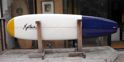 こちらは、雪山のエキスパートのHさんのミニロング。ミニロングといっても長さは、6フィート代。6’11”となんとなく「響きが良い」サイズ。フィンはトライフィン。ロングボードのようにのんびり波乗りが楽しめて、マニューバもばっちりのサイズですね。