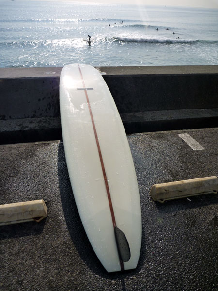 クラシックなDフィンは乗り味もクラシック。波の上では基本に忠実に身体を使って、ひとつひとつの動きを丁寧にコントロールしてあげます。気持ちはゆったり上半身もゆったりリラックス、丹田から下だけに力を入れてロングボードらしくを意識して乗るボードです。ロンガーの皆さん、シングルフィンのロングボード持ってますか?