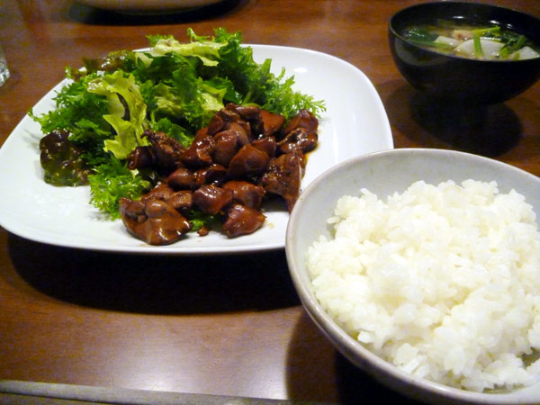 昨日の晩ご飯は、最近話題の鳥もつ煮。レバ、ハツ、スナギモを醤油で甘辛く炒め煮しました。白いご飯がよーく合います。