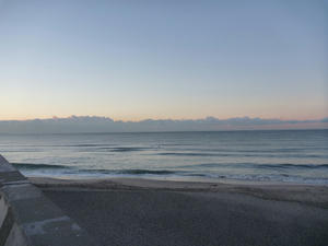 いい天気です。寒いですが、太陽が高くなれば快適に波乗りできます。今日はドライスーツではなく、STEAMERの5/3mmノンジップの折り返しネックをテストしてみました。