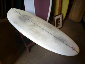 70年代のトライプレーンというデザインをベースにシェイプしたハルです。ハル特有の抵抗感がない滑りでダウンザラインのスピードを発揮することができて、カットバックが必要なセクションではほんの少しの体重移動でスムースにカールへと戻ることができます。