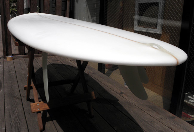 S山さんの5’6”MINI2ツインスタビ完成しました~。クリアのサンディング仕上げで、すっきりシンプルです。レールを含めた全体のボリューム感もご要望どおりに出来上がっています。