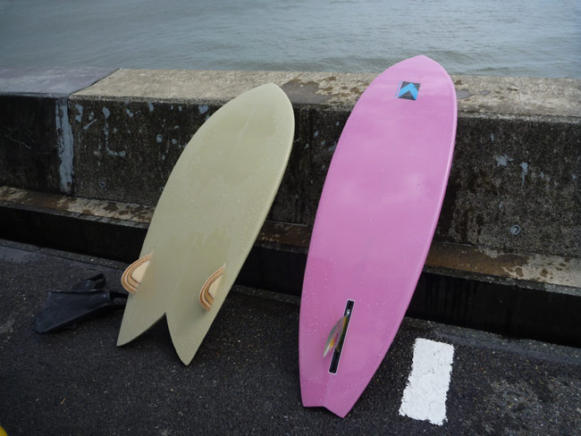 シングルフィンはカツさんのLOVEEというモデル。ダウンレールで70年代調のクラシカルなシングルフィンのシェイプです。久しぶりにハルじゃないシングルフィンに乗りました。マルチフィンのように敏感に反応はしてくれませんが、角度が少ないゆるめのラインを意識して乗ると気持ちいいのです。