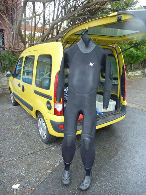 小一時間ほどで撤収。海から戻ったら、髪を水であらってタオルで拭いて、ドライスーツを脱いでズボン履いてジャケットを着たらもとどうり。ドライスーツはこんなときに威力を発揮します。
