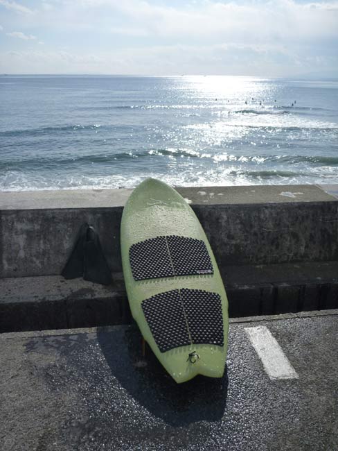 昨日の定休日、午前中のまだ早い時間に海辺を通ったときには、ほとんどフラット。でもなんとなくうねりはあるので、昼のロータイドに期待して通過。