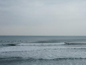 写真の左側に人が集まっていますが、そこから少し右側にずれたところで待っていると、沖の右側から来る波はピークが左へシフトして、ちょうど自分が待っている目の前に立ち上がってくるので、ひとりで何本もいいのを頂戴いたしました。